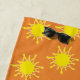 Beach Towel Lovely, simples e na moda Sun em um fundo laranja para as aventuras de verão na praia.