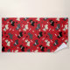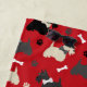 Cães escoceses, cinzas e cães escoceses que vestem arcos, com pegadas e ossos de cães em fundo vermelho.