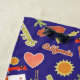 Esta toalha de praia colorida com imagens dos Estados da Califórnia iluminará acima de toda a praia ou piscina. As imagens incluem um carro de trole, uma imagem da estátua de Oscar, um sol alaranjado, o esboço do estado, um carro de esportes do vermelho, um coração cor-de-rosa, o texto que diz Califórnia e Golden State, a bandeira do estado com a imagem tradicional do urso, e palmeiras! As cores predominantes são alaranjadas, verde limão, e ouro, colocado toda em um fundo azul escuro. Seja certo ver os produtos de harmonização em nossa loja. a arte do *Clip usada neste design é com direitos de autor por Encore Software, Inc., que permite o uso a seus concessores. Todos os direitos reservados.