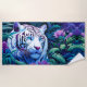 Toalha De Praia Tigre branco em flores roxas