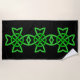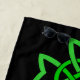 Esta toalha de praia personalizada tem três nódulos celtas irlandeses verdes vibrantes interligados num fundo preto.