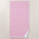 This beach towel features a pink and white cane webbing pattern.