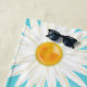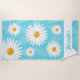 Esta toalha de praia apresenta flores brancas de margarida ilustradas de Destei em vários tamanhos. A cor de fundo é azul e tem um padrão claro de folhas. Há também uma área de texto personalizável para um nome na parte inferior.