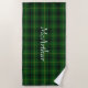 Toalha de praia na moda feita no clássico clã escocês MacArthur tartan, padrão de xadrez. Personalize o grande texto branco, no meio, para atender às suas necessidades.