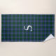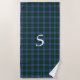 Toalha de praia elegante feita no clássico padrão xadrez tartan Sutherland, nas cores azul e verde da clã escocesa. Personalize o grande monograma de uma letra branca no centro, de acordo com as suas necessidades.