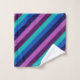 Um pano de lavagem com um padrão colorido de faixas diagonais em azul legal, azul-oceano, azul-marinho, roxo de ameixa e lavanda.