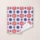 This washcloth features a beautiful colorful floral pattern of blue, purple and red stylized daisies against a white background; perfect for adding a touch of retro cuteness to your bathroom.