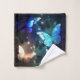 Fabulosa, brilhante, azul e amarela, borboleta noturna sobre fundo escuro.