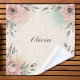 Este pano personalizado de lavagem da moda apresenta flores esboçadas e encantadoras em cantos com texturas aquáticas moles, cor-de-rosa e verde-menta.