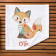 Este pano de lavagem personalizado de crianças apresenta uma raposa branca e branca criada num estilo de retalhamento. A raposa é projetada com uma mistura de tecidos coloridos e padronizados, incluindo bolinhas, listras e texturas folheadas.