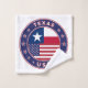 Crachá do Texas com bandeira do Texas e bandeira dos EUA, cores, forma arredondada. Emblema do Texas. Selo do Texas. Coleção dos Estados Unidos.