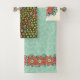Traga um estilo de vintagem alegre para o seu banheiro com este conjunto de toalhas florais retrorais com cor-de-rosa forte e margaridas aqua sobre um fundo de folha verde aqua. Perfeito para quem ama cottagecore, decoração feminina no banheiro, ou paletas coloridas nostálgicas, este conjunto de toalhas macia e na moda adiciona um toque divertido e feminino ao seu espaço. Excelente para uma renovação do banheiro, banho de hóspedes ou um presente encantador de casa!