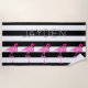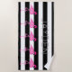 Esta toalha de praia é moderna e na moda com as listras preto e branco corajosas e os flamingos cor-de-rosa. Personalize-a com seu nome.