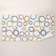 Este conjunto de toalhas tem uma toalha de banho com um design de Boho de círculos sobrepostos em tons retrorados de verde, castanho, azul e cinza, um pano de lavagem verde e uma toalha azul de mão.