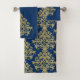 Adicione a elegância vintage à decoração do seu banheiro com este conjunto de toalhas douradas e damasco azul. Este conjunto de toalhas seria um bem pensado aquecimento doméstico, casamento ou outra ocasião