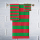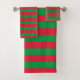 O conjunto de toalhas personalizadas com distribuição horizontal e vermelha de Natal apresenta as cores clássicas de Natal do Vermelho e do Verde em faixas horizontais e fornece os acessórios perfeitos de feriado para atualizar seu banheiro este ano ou qualquer ano. Você pode personalizá-los adicionando imagens e texto próprio, como um monograma ou fotos, ou deixá-los como projetados. Procure e coordene decorações e acessórios personalizáveis em nossa loja em zazzle.com/DIYDecor.