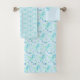Toalhas de banho com padrão de bolhas azuis com fundo azul claro. Corresponde à cortina do chá da Bolha Azul