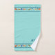 Este conjunto de toalhas foi projetado com uma borda de conchas e listras em um fundo aqua (azul de espuma marinha). Use a opção Personalizar para adicionar suas próprias iniciais ou vazio-as para um conjunto de toalhas genérico. Use a opção Personalizar para alterar a fonte e/ou reposicionar o texto, se necessário. Veja minha loja para outras combinações de cores desta design e coordenando o decoro do banheiro.