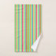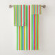Conjunto de toalhas estriadas, vibrantes e alegres, verdes, azuis, vermelhas e amarelas.