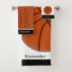 Equipe de basquete de esportes personalizou a Design de Bath Towel Set por Sandy Closs. Personalizada com o nome, imagem de basquete em um fundo branco. Um presente de excelente para o seu companheiro de equipe de basquete. Adicione um tapete de banho e uma cortina de chá para a sua família e amigos. Legal decoração para salas com temas desportivos. Excelente para todos rapazes raparigas homens mulheres e crianças.