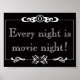 Que noite é essa? É noite de cinema, claro! Se você não acredita em mim, veja esse poster de "Toda Noite é Filme". O design preto e branco apresenta um filme clássico, silencioso, cartão de título com rosto aberto, escrevendo branco que diz: "Toda noite é noite de cinema!" Este é o presente perfeito para os cineastas. Esta poster parece igualmente em casa, em um dormitório ou em um home theater.