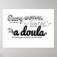 O apoio e o encorajamento que uma doula oferece a uma mãe trabalhadora é inestimável. Todas as grávidas e parturientes merecem a força gentil de uma camaradagem feminina que ama o nascimento e acredita na incrível habilidade do corpo de produzir vida de forma segura e bela. Uma doula sabe quando fazer um sussurro de elogio, quando ficar reverentemente silencioso, quando legal seu rosto com um pano molhado e quando você só precisa sentir o calor do toque humano. Espalhe a palavra sobre incríveis doulas com esta poster, "Cada mulher merece um doula". Seria um presente excelente dizer obrigado para o seu doula! Ou seria fantástico pendurado no escritório de uma parteira.