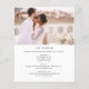Capture a essência da sua história de amor com o nosso Convite Minimalista de Casamento de Fotos All-In-One. Este design elegante e elegante permite-lhe mostrar a sua fotografia de noivado favorita juntamente com os seus detalhes de casamento, tudo num cartão conveniente. Com sua estética minimalista e linhas limpas, esse convite exude a sofisticação moderna enquanto mantém um apelo eterno. Personalize com seus nomes, data de casamento e informações de local para criar um convite verdadeiramente personalizado que reflita seu estilo único como um casal. Feito com materiais de alta qualidade e com um acabamento profissional de impressão, este convite certamente impressionará seus convidados e definirá o tom perfeito para seu dia especial. Simplifique seu planejamento de casamento com nosso Convite Minimalista de Casamento de Fotos, um na moda e uma escolha prática para o casal moderno.