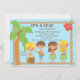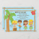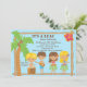 Comece a comemorar com este adorável convite do Luau. Seja um churrasco de quintal ou uma festa de aniversário de criança, este é o convite perfeito para você! Tem uma estrutura de madeira de madeira de carvalho com uma palmeira no canto esquerdo. Há 4 crianças do Havaí no fundo. 2 meninos e 2 meninas. Um está tocando bongos, outro ukulele. As meninas estão vestindo saias de grama e têm uma flor em seus lindos cabelos longos. No canto superior direito há uma flor vermelha de hibisco. Veja os muitos outros designs e produtos desta linha. ©JW Ilustrations