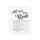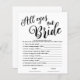 Torne seu chá de panela divertido e memorável com o Jogo de Chá de panela Simples All Eyes on Bride. Este jogo interativo e divertido foi projetado para trazer risos, alegria e um pouco de competição amigável para a sua celebração. O jogo "All Eyes on Bride" encoraja os hóspedes a se concentrarem na noiva, respondendo perguntas ou executando tarefas que giram em torno dela. É uma quebra-gelo perfeita que reúne todos. As instruções fáceis de seguir tornam este jogo adequado para todas as idades. Sem regras complicadas, apenas diversão direta que todos podem aproveitar. Os cartões de jogo apresentam um design limpo e elegante que complementa qualquer tema de chá de panela. As cores suaves e femininas e a tipografia saborosa adicionam um toque de sofisticação ao seu evento.