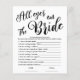 Todos os olhos no Jogo Simples da Noiva - aqui está o jogo de chá de panela comum para fazer seus convidados se divertirem. À medida que se prepara como um modelo, pode personalizá-lo de acordo com os seus desejos/necessidades. PARA MAIS JOGOS COM O MESMO DESIGN escreva G317 na caixa de pesquisa do meu compro. Obrigados para visitar o meu compro. Caso precise de algo sobre o design, entre em contato comigo: szdesigns2021@gmail.com