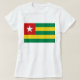 A frente desta t-shirt exibe corajosamente a bandeira togolesa com as suas bandas verdes e amarelas distintivas, com uma estrela branca, em cantão vermelho. Isso é combinado atrás por um mapa atraente do Togo.