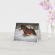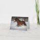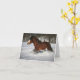 Um garanhão bonito de Clydesdale funciona através de um país das maravilhas do inverno neste cartão de nota bonito.