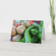 Tomates e pimentões verdes no cartão de saudação. Você pode personalizar este produto gratuitamente se quiser adicionar texto ou alterar a cor do plano de fundo.