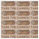 O tecido apresenta uma ilustração original de um delicioso cannoli, com TAKE THE CANNOLI escrito em uma fonte marrom divertida. Impresso sobre fundo brando.