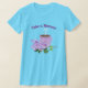 Camiseta azul-bebê com lilases e uma xícara de café. Design de arte por Linda LaBow Wagner.