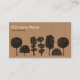 Um cartão de visita moderno com um motivo original atrativo que consiste na árvore ou em arbustos estilizados tirados sete mãos do estilo do topiary. Os detalhes da empresa estão na parte dianteira com nome e contactam detalhes no verso com uma versão prolongada do motivo dianteiro ao longo da parte inferior. Apropriado para uma variedade de negócios. Apronte para ser personalizado. As cores do fundo são igualmente customizáveis.