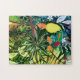 Toque e flores coloridas. Quebra-cabeça de serra