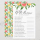 Quem conhece melhor a noiva? Adicione este cartão de jogo de chá de panela divertido e divertido ao seu evento. Apresenta toranjas aquáticas, laranjas, verde e hálito de bebê. Personalize este jogo de chás de panela cítricos adicionando suas próprias perguntas. Este jogo de chá de panela de toranja é perfeito para chás de panela de verão.
