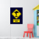 Tornado Xing - poster azul escuro com estilo design de sinal de aviso humorístico em amarelo e preto.