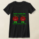 Dois tomate sorridentes em uma camiseta negra T Shirt com o slogan Cresça e pare de olhar para o meu! escrito em vívido verde escrevendo.