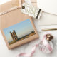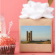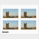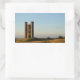 Um adesivo de foto retangular de souvenir com a folia Torre Broadway em uma colina perto da Broadway, olhando para os Cotswolds na Inglaterra, Reino Unido, no pôr do sol.