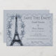Anuncie seu próximo dia de casamento com uma Torre Azul Eiffel, salve o anúncio da data. Salve o design de data que apresenta a Torre Eiffel adornada com um quadro florescente rico contra um fundo verde e embelezamento de carimbo postal. Material adicional disponível com esta design também. Precisa de ajuda para a personalização? Peço-lhe que me contacte e que elabore a redação e os pormenores para que este design seja ajustado para vossa satisfação.