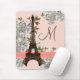 Personalize esta primavera no mousepad monogrammed da torre Eiffel de Paris com uma árvore bonito da flor de cerejeira, no fundo costurado cor-de-rosa da fita e do polk-um-ponto com seu inicial ou monograma. Este tapete do rato do monograma faz um presente bonito do escritório domiciliário. Projetado por Chrissy H. Estúdio, LLC. Todos os direitos reservados.