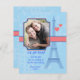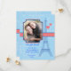 Moderno e romântico guarde o cartão com fotos de data. Possui a Torre Eiffel com dois corações e um plano de fundo. Paleta de cores de coral azul e claro. Adicione sua própria imagem e texto. Excelente para o casamento de destino, viajantes ou casais de diferentes origens culturais.