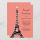 Luzes cintilantes eletrizam a Torre Eiffel neste convite 16 de inspiração parisiense. É apresentado no documento de base; no entanto, recomendo que o shimmer do papel de gelo metálico melhore ainda mais o brilho das luzes cintilantes.