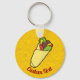 Ilustração de desenho animado de plástico tortilla. Fundo de comida rápida amarelo sem aspecto. Texto personalizado de ambos os lados.