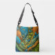 A vibrant abstract design in shades of blue and orange covers this unique Tote Bag.