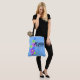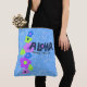 Coroa azul e violeta. Flores de cartoon divertidas, femininas e caprichosas ajudam a enviar a mensagem de que Aloha significa olá! Este design vem de várias maneiras coloridas. Esta bolsa de praia é reversível.