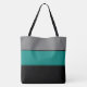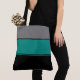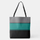 Este saco de tote de tamanho médio na moda é mostrado em um design de bloco colorido com cores de preto, Cinza e lacre. Personalize este item ou comprar como está.