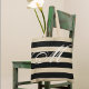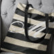 Um saco de na moda com seu nome e inicial em um plano de fundo de grandes faixas pretas
